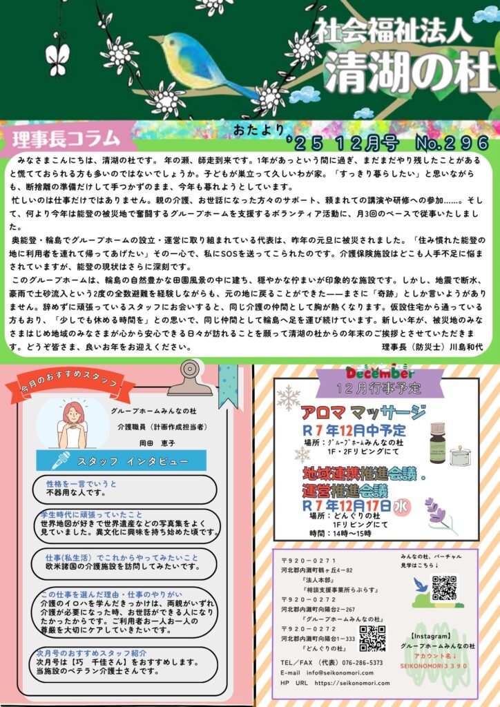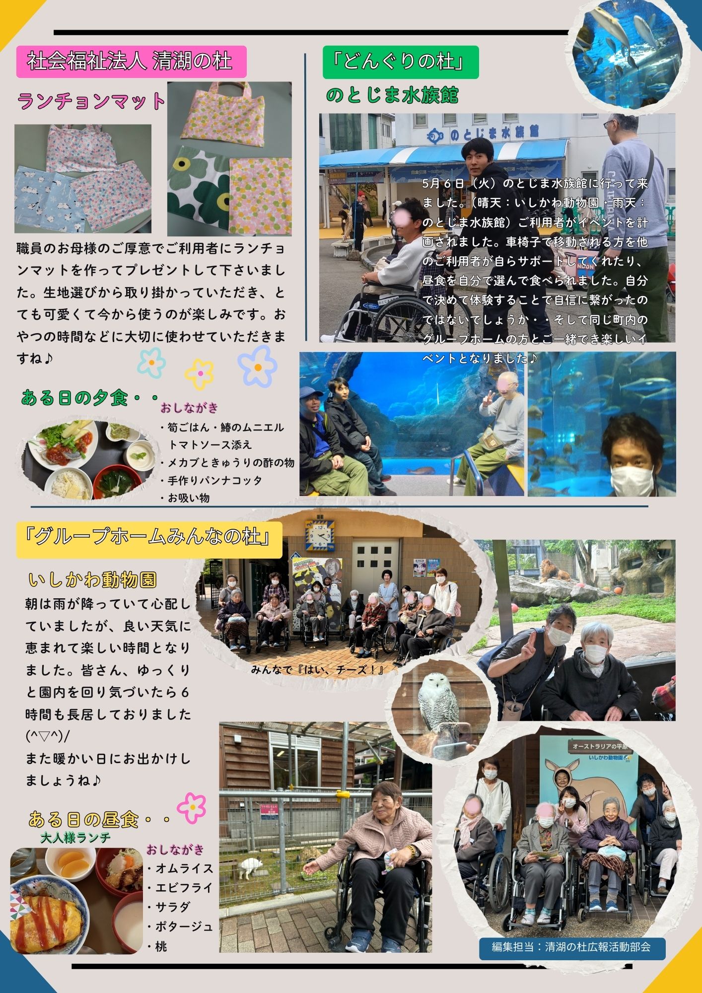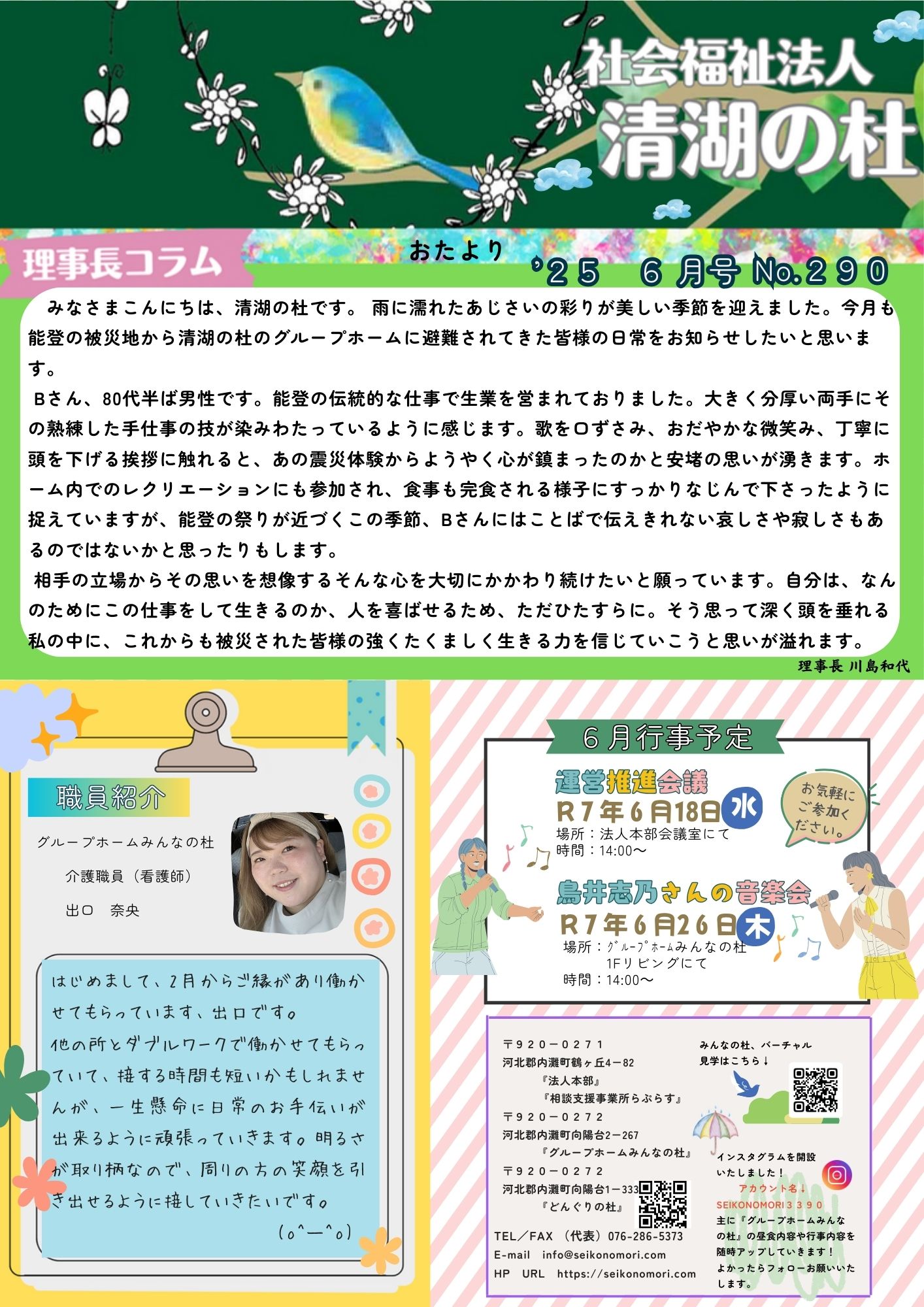 青い空にさわやかな新緑の風が吹く季節を迎えました。グループホームみんなの杜では、この数カ月の間に数名の方の旅立ち(看取り)を支援させていただきました。病気や老いていく中で最後の日を迎えるのは必定と思いますがそれぞれの最後の日々、ご本人にとってもご家族にとっても悔いのない時間を大切に過ごせるようにさせて頂きました。