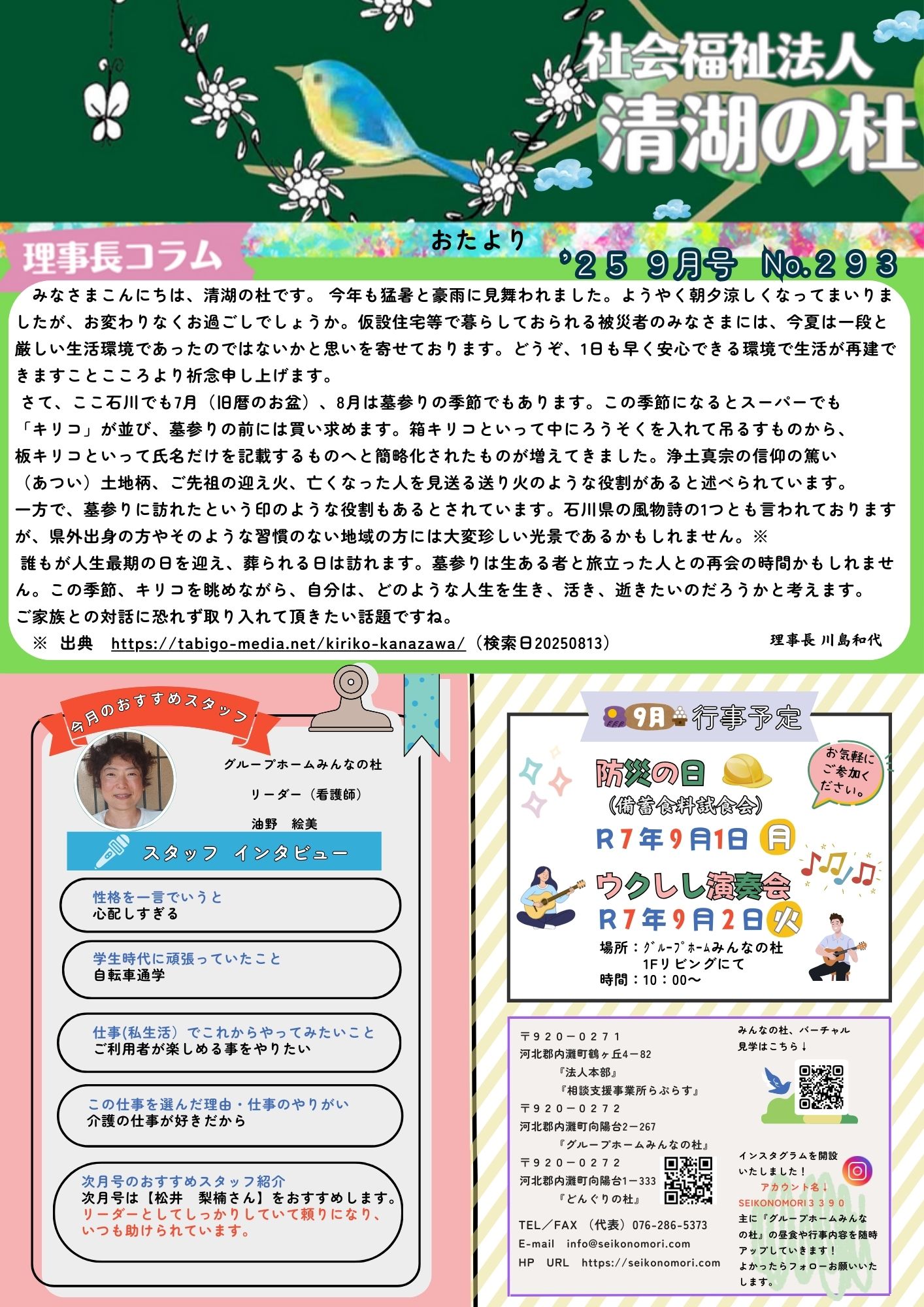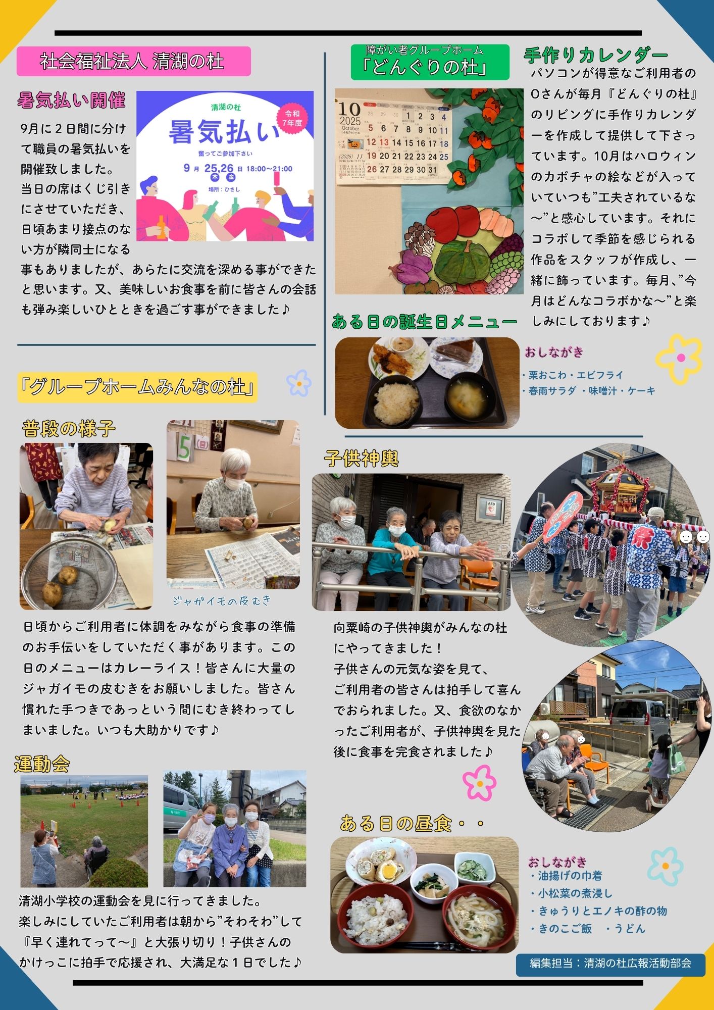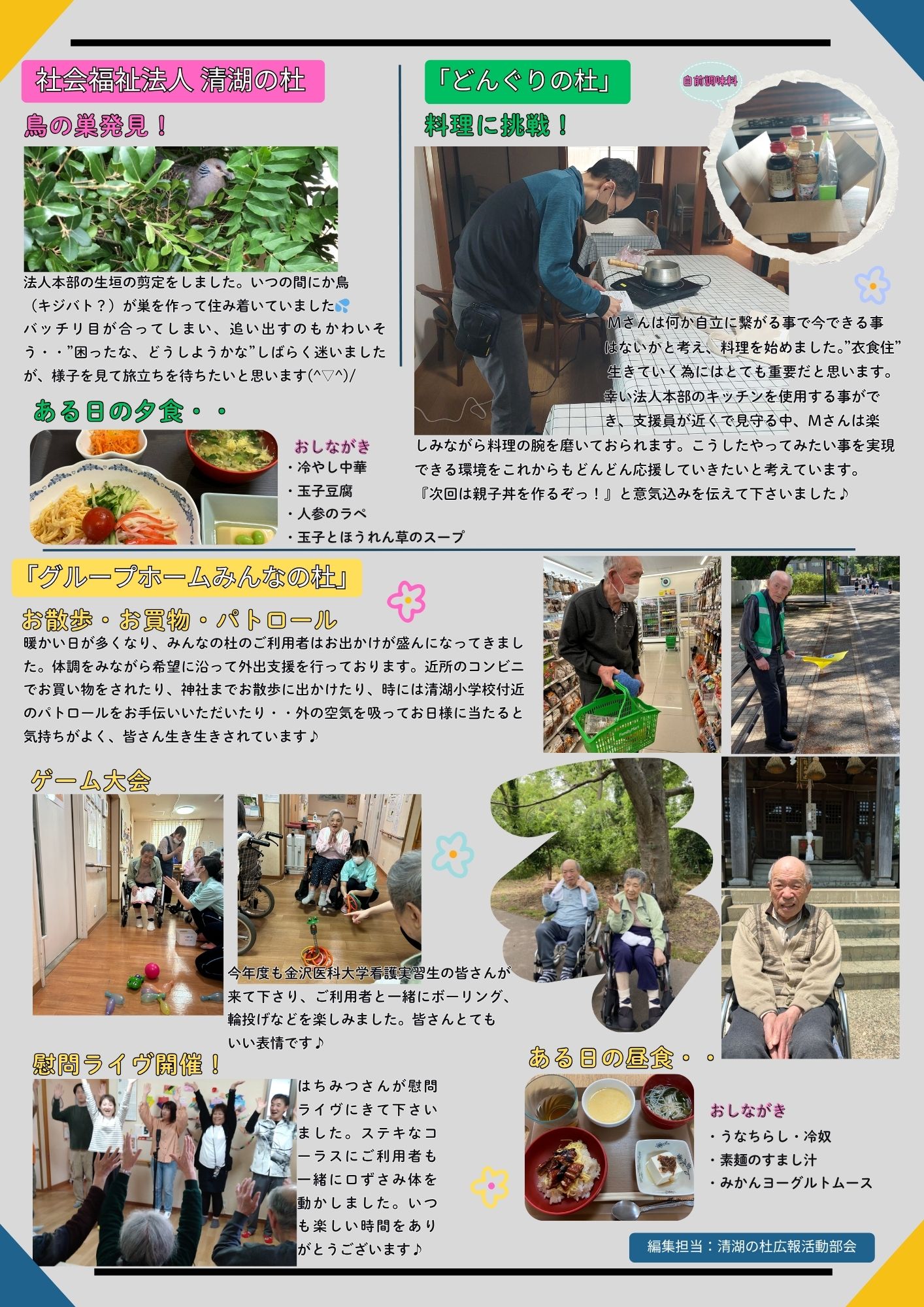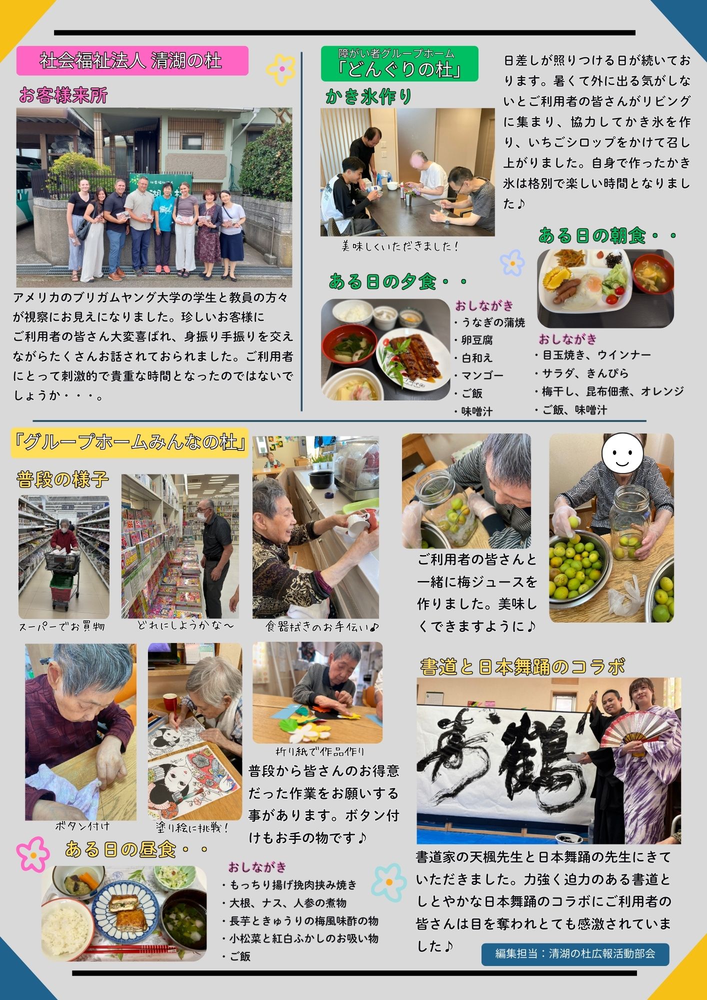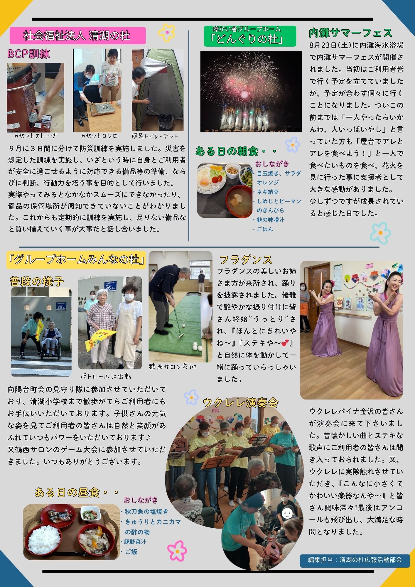 残暑お見舞い申し上げます。今夏の楽しい思い出となるイベントとして、8月24日(土)に開催された向陽台町会のサマーフェスティバルに清湖の杜も参加いたしました。台風10号の北上が心配されていましたが、ゆっくりとした動きのおかげで北陸地方は天気も穏やかでこの時期としては比較的涼しい夕刻となりました。